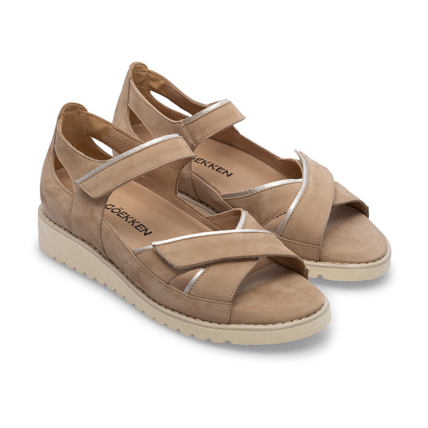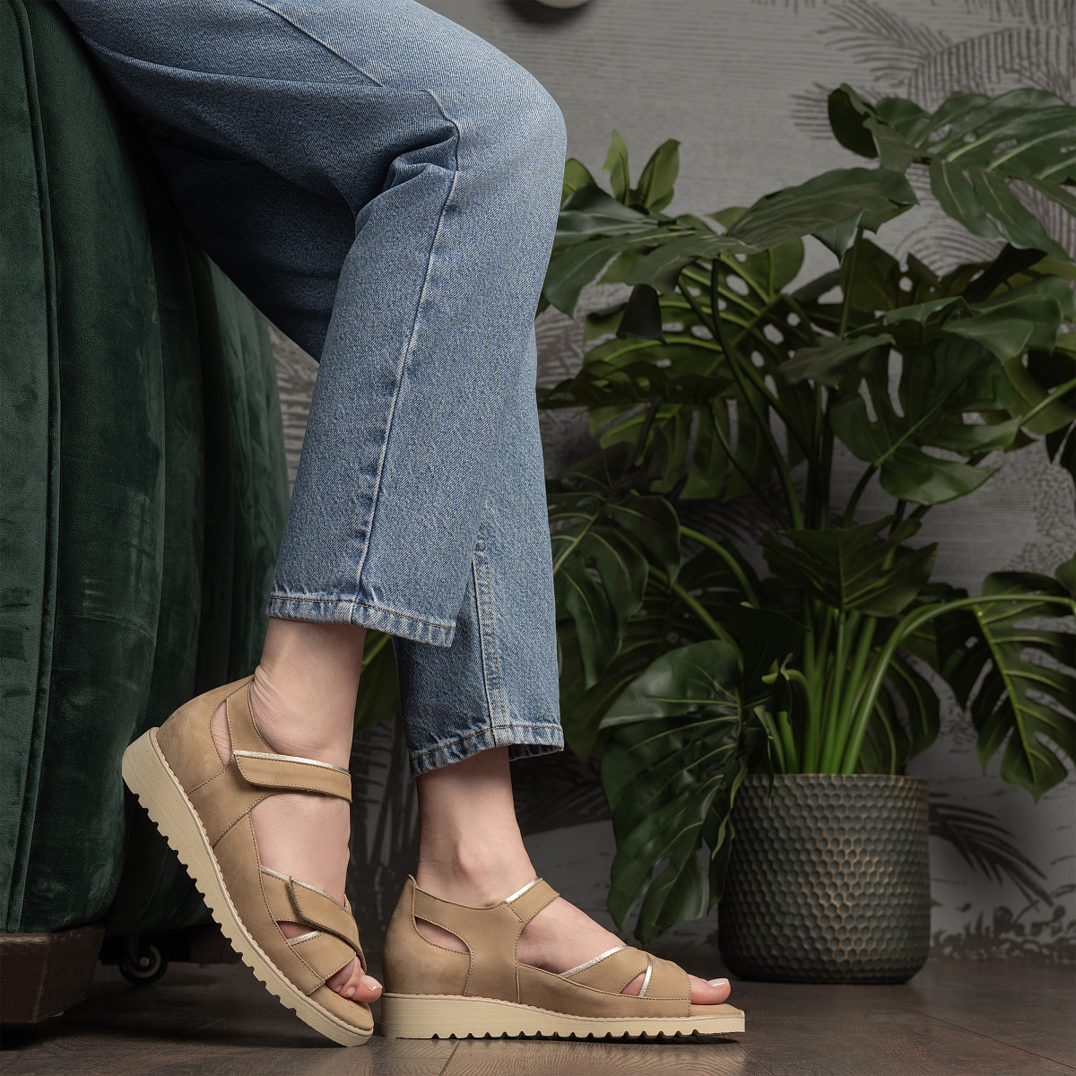 Женские ортопедические сандалии Göekken Felicia — легкая летняя модель из мягкого натурального нубука для повседневной носки и долгих прогулок. Верх с ремешками на липучках Velcro позволяет полностью раскрыть сандалии, поэтому их удобно надевать даже при отеках или широкой стопе, а посадку можно тонко настроить по подъему и полноте.