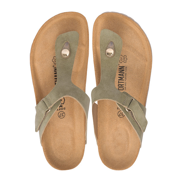 Женские ортопедические шлепанцы Ortmann York Alt — стильная и комфортная модель из натуральной замши с межпальцевой силиконовой перегородкой, подходящая для повседневного ношения и долгих прогулок на природе и в городе.