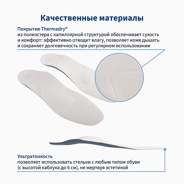 Одни из немногих стелек, которые подходят для использования в узкой модельной обуви на каблуке. К сожалению, м...
