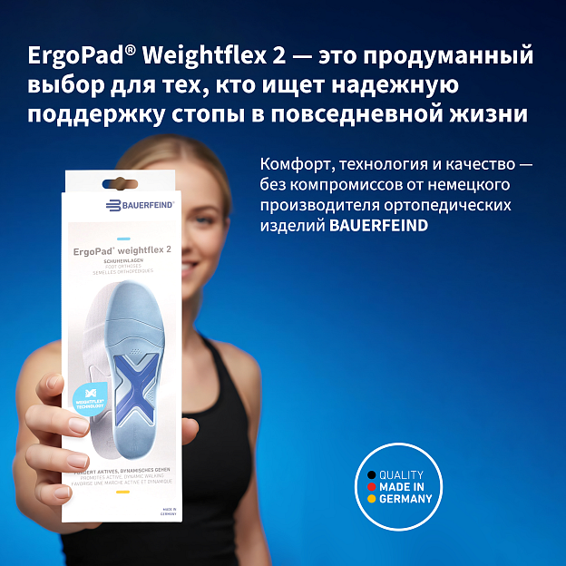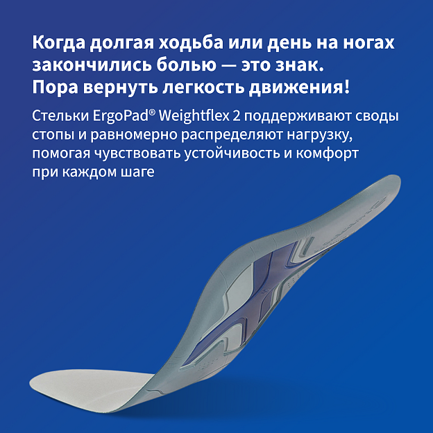 Ортопедические стельки ErgoPad® Weightflex 2 являются универсальным решением при целом ряде заболеваний стоп, позвоночника и суставов ног.
