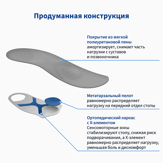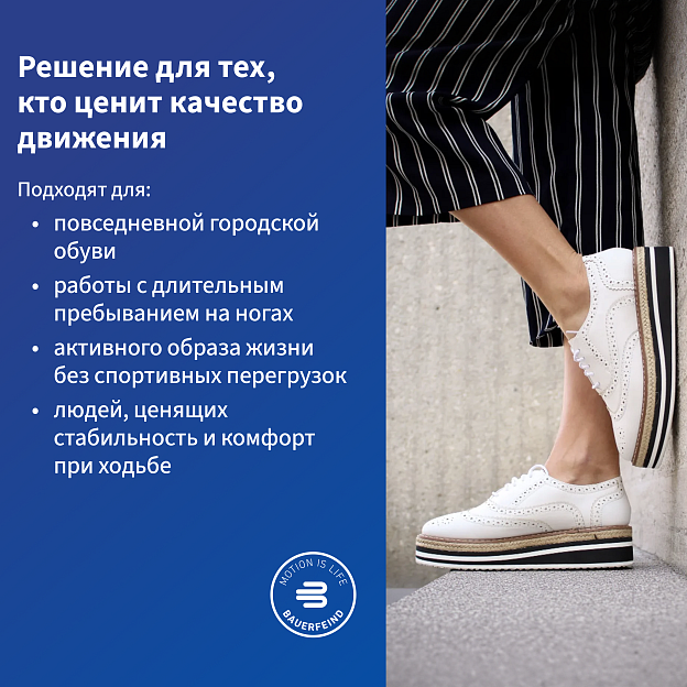 • повышают комфорт и устойчивость при ходьбе в любой обуви;