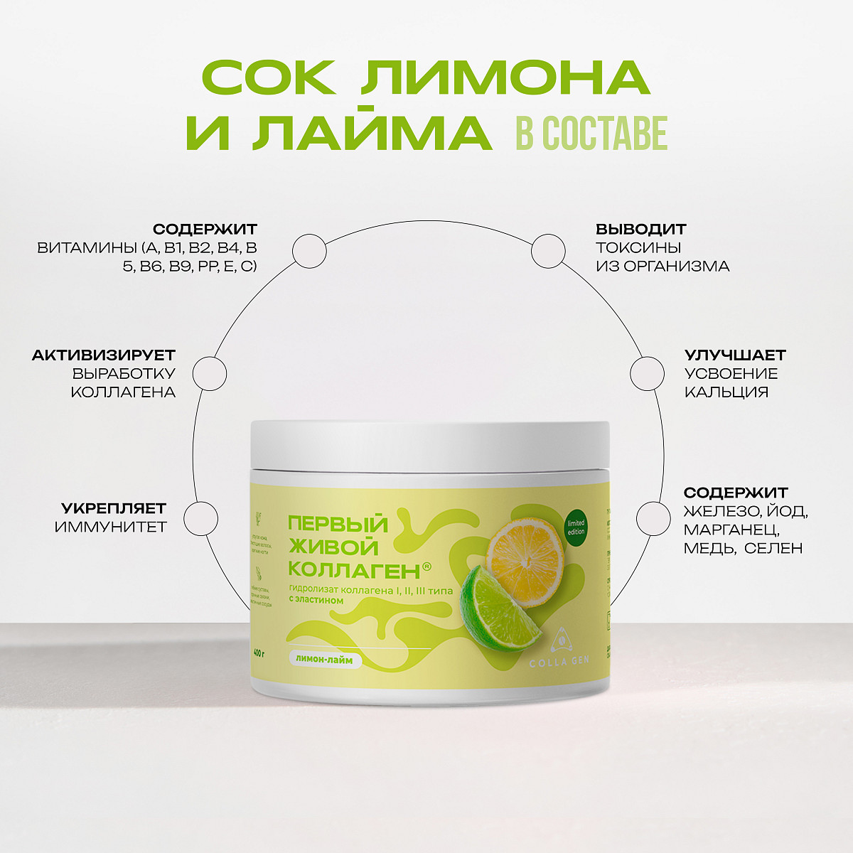 • Со вкусом лимон-лайм: гидролизат коллагена пищевой, сок яблочный концентрированный, сок лимонный концентрированный, сок лайма концентрированный, вода очищенная, ароматизатор пищевой.